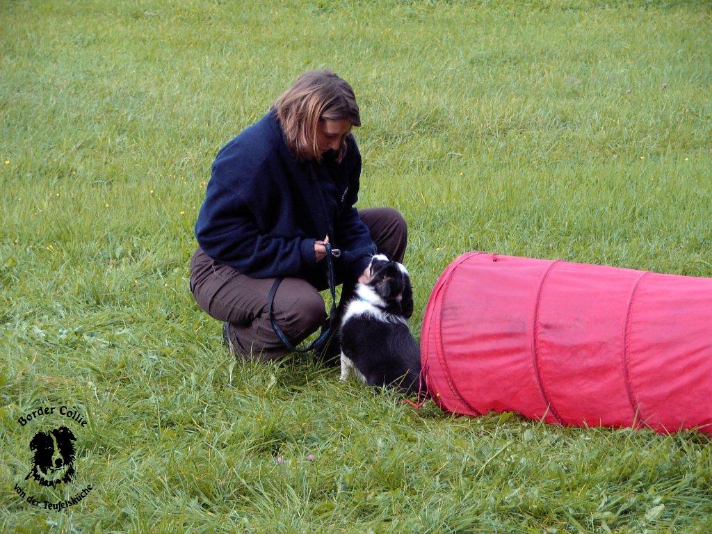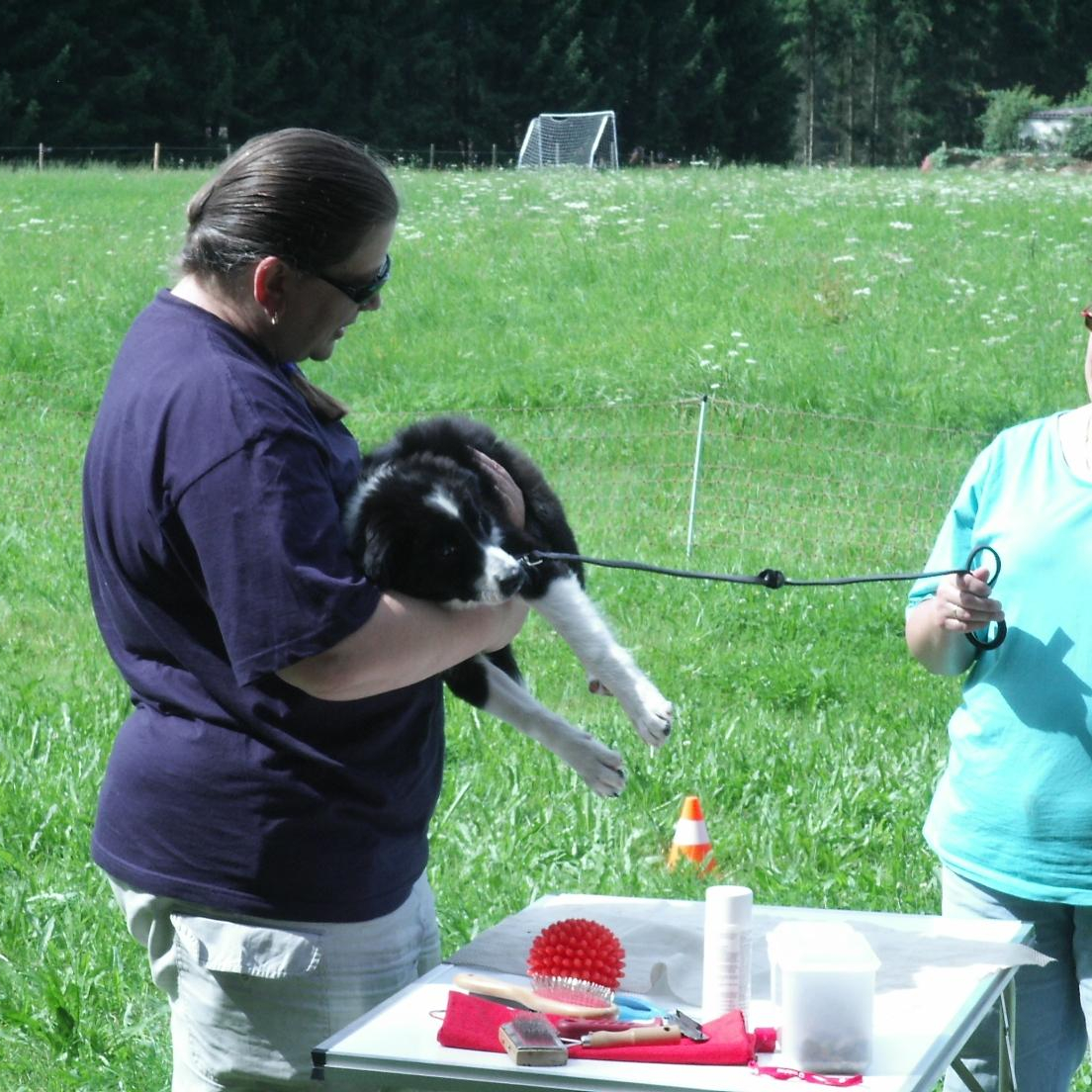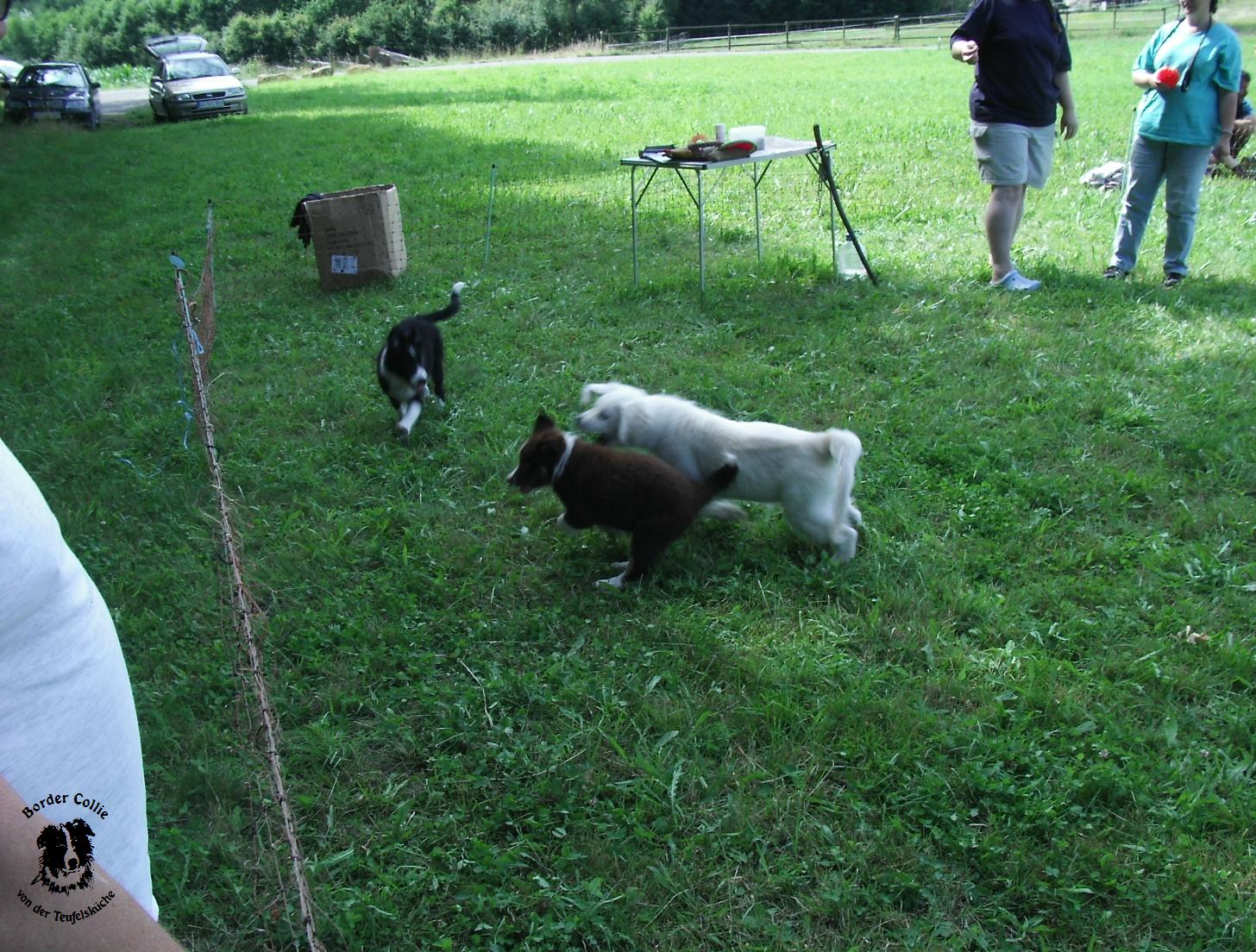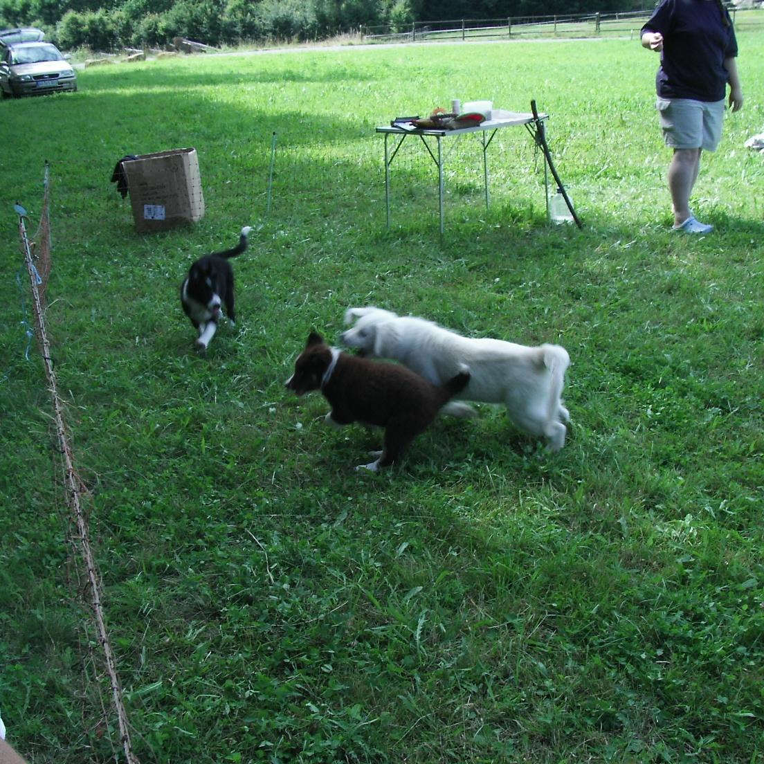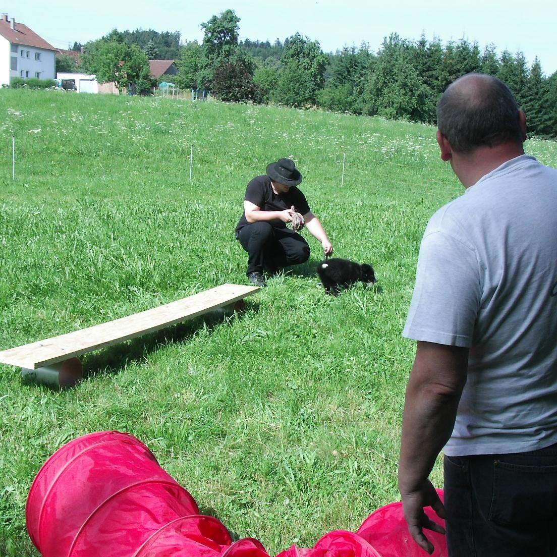 Seit dem 1. Juli 2007 treffen sich die drei mit ihren Besitzern mit weiteren Welpen - immer Sonntag vormittags im Birkhof unter der Leitung von Christine Schaal. Hier lernen sie die Anfänge der Unterordnung (Fuß, Sitz, Platz), leichte Gewandtheitsübungen und Verhalten beim Tierarzt; Pflege des Hundes und allgemeines sind bei den Hundeführern beliebte Fragen. Vor allem das Spielen kommt nicht zu kurz.