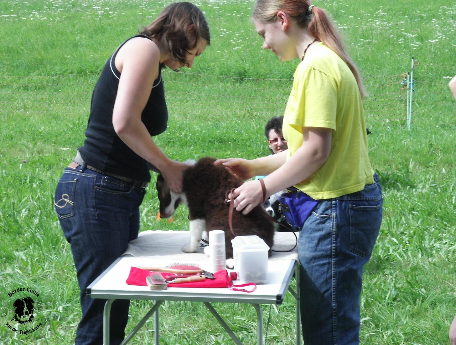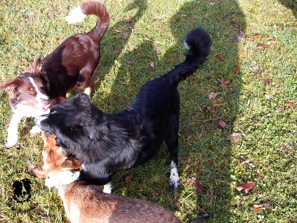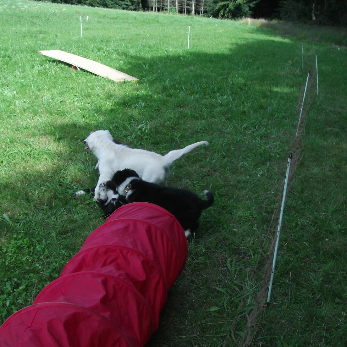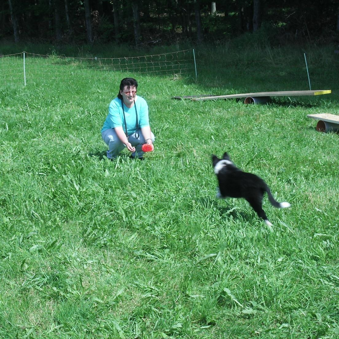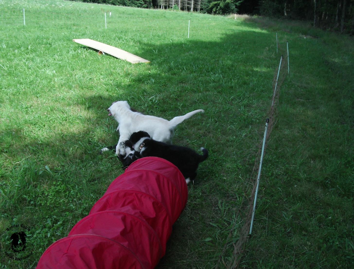 Seit dem 1. Juli 2007 treffen sich die drei mit ihren Besitzern mit weiteren Welpen - immer Sonntag vormittags im Birkhof unter der Leitung von Christine Schaal. Hier lernen sie die Anfänge der Unterordnung (Fuß, Sitz, Platz), leichte Gewandtheitsübungen und Verhalten beim Tierarzt; Pflege des Hundes und allgemeines sind bei den Hundeführern beliebte Fragen. Vor allem das Spielen kommt nicht zu kurz.