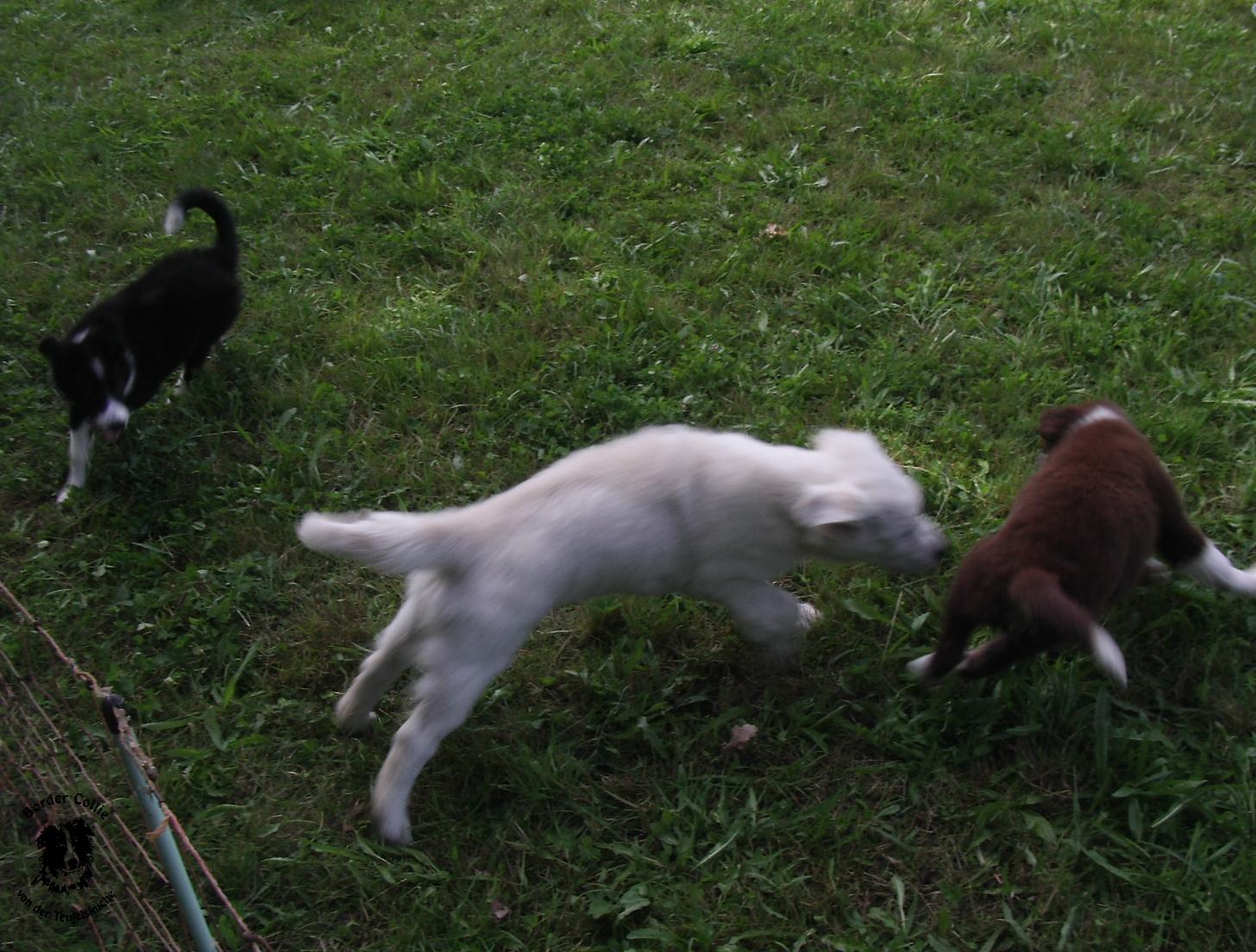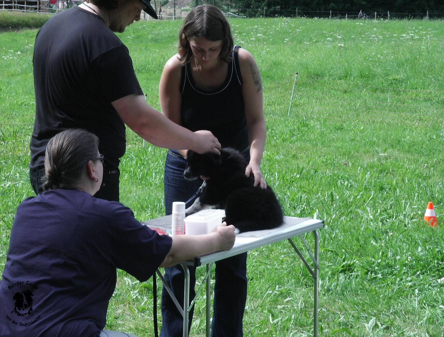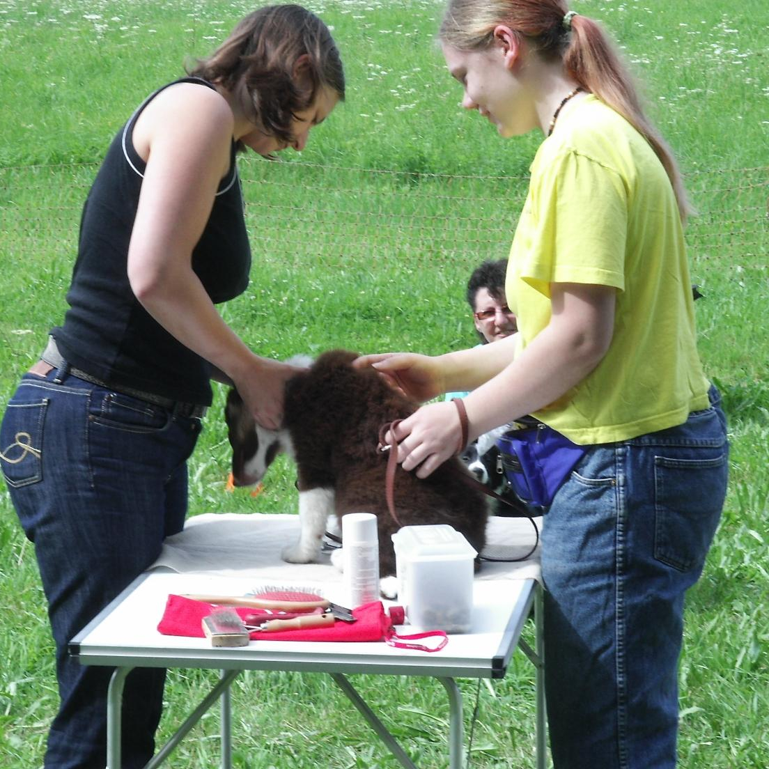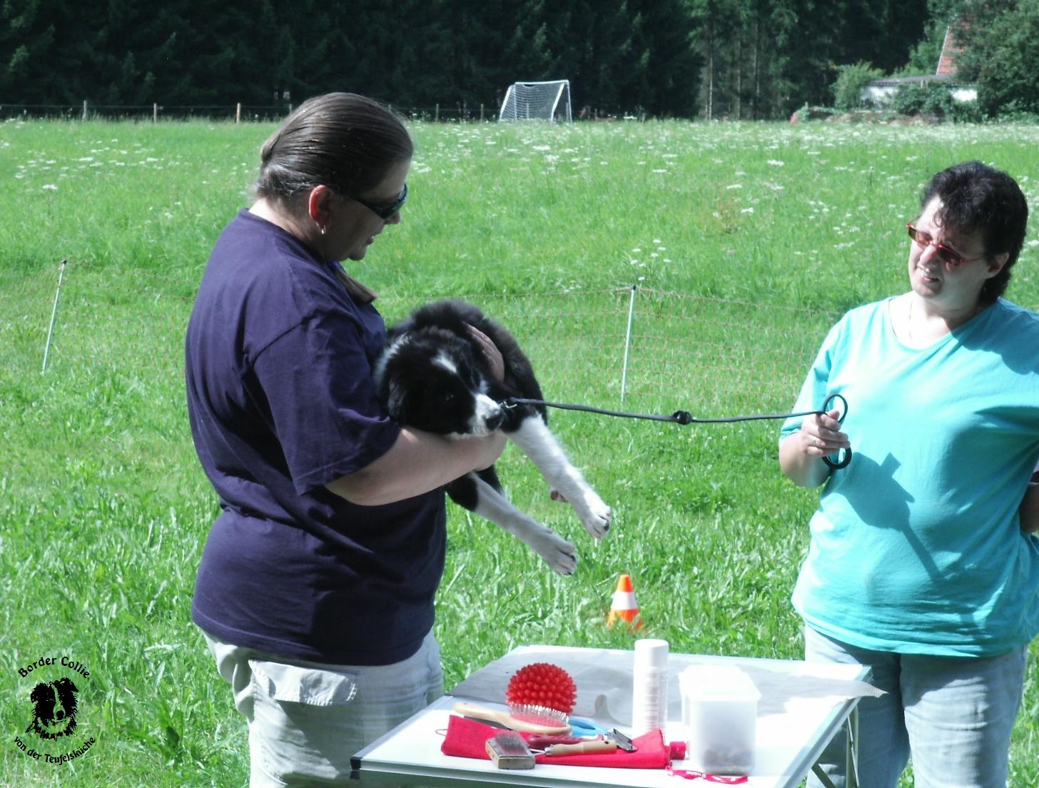 Seit dem 1. Juli 2007 treffen sich die drei mit ihren Besitzern mit weiteren Welpen - immer Sonntag vormittags im Birkhof unter der Leitung von Christine Schaal. Hier lernen sie die Anfänge der Unterordnung (Fuß, Sitz, Platz), leichte Gewandtheitsübungen und Verhalten beim Tierarzt; Pflege des Hundes und allgemeines sind bei den Hundeführern beliebte Fragen. Vor allem das Spielen kommt nicht zu kurz.
